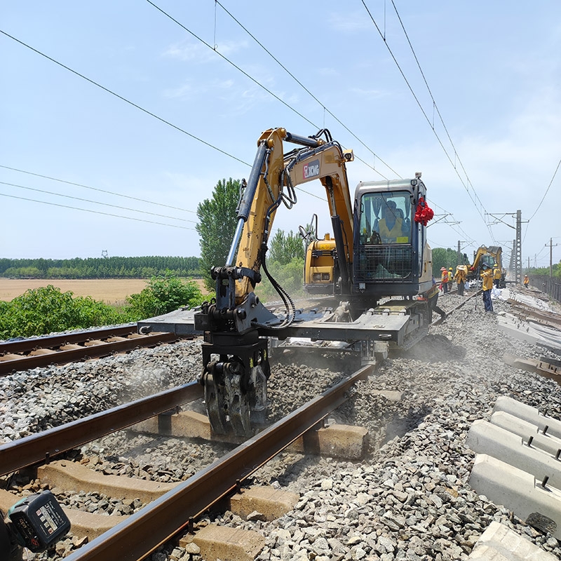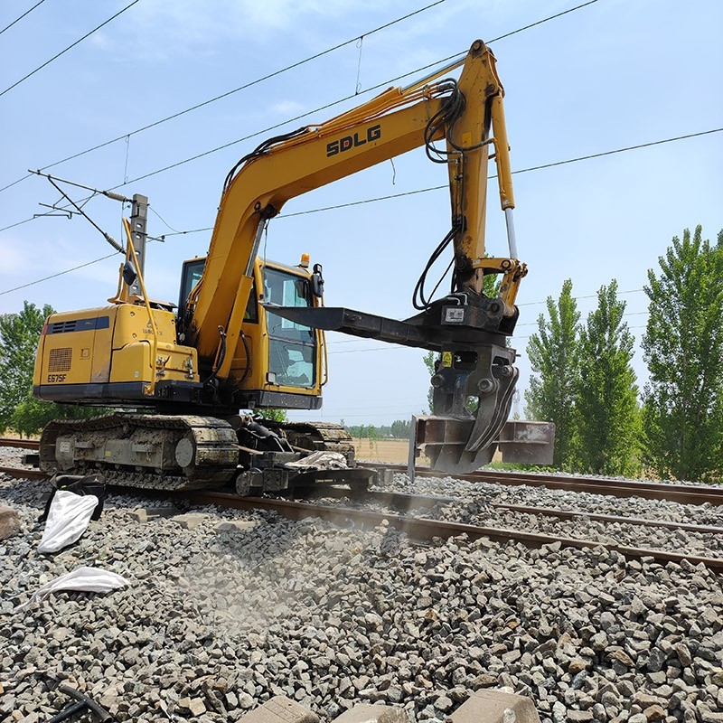 鐵路枕木更換機又叫軌道換枕夾具是山東鐵推鐵路工程有限公司專業生產、改裝的一款針對于鐵路施工的設備,鐵路枕木更換機主要是運用挖掘機進行底盤的改裝,在保證原有挖機結構不邊的情況下在底盤加裝前后升降支架并且安裝驅動輪行駛輪,實現了挖掘機可以在道軌上行駛的要求,保證挖掘機的運行不會出現跑偏......